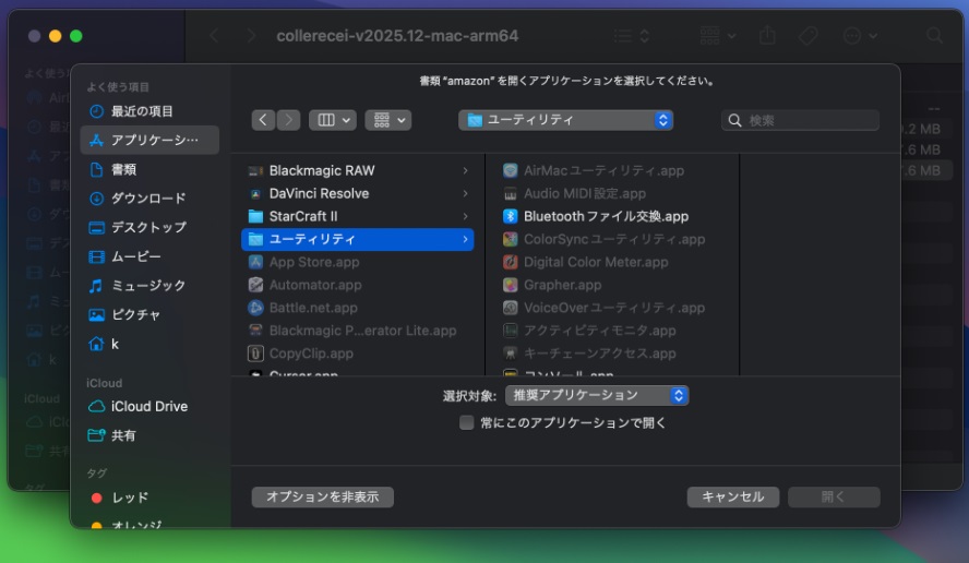 このアプリケーションで開く → その他… をクリックする