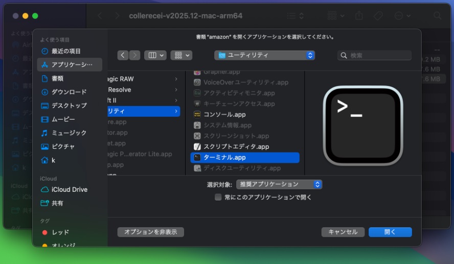 これれしをmacOS上で起動するには、適切なアプリケーションからこれれしを開く必要があります。