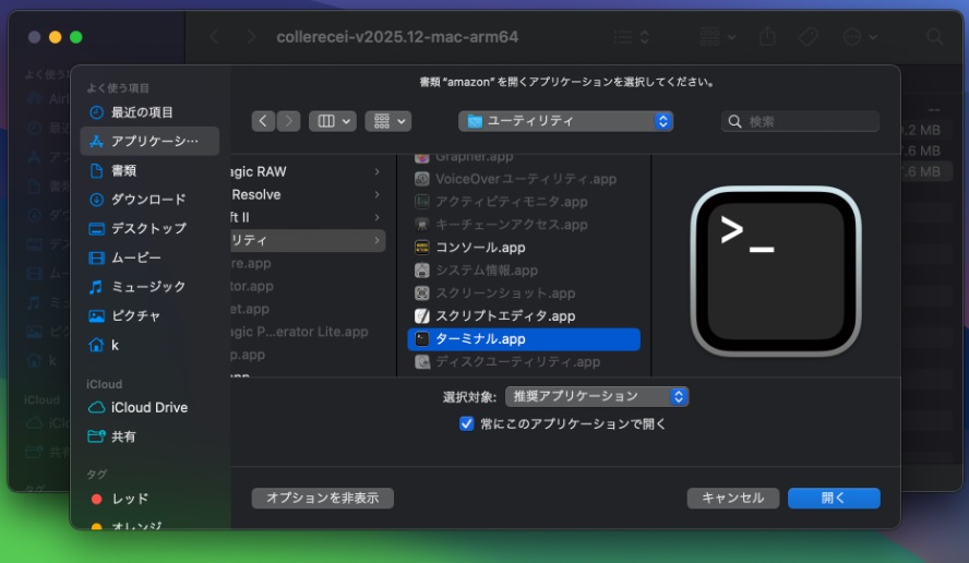 「ターミナル.app」を選択する